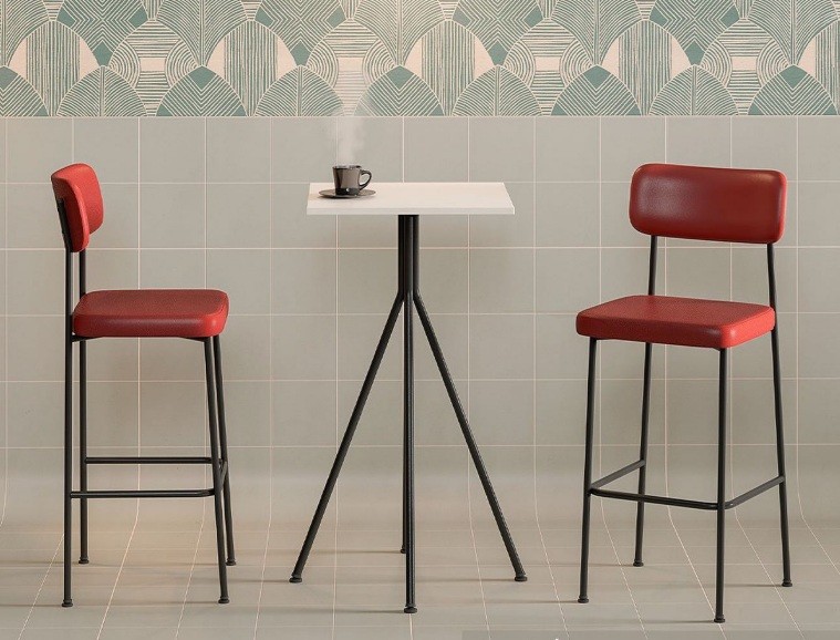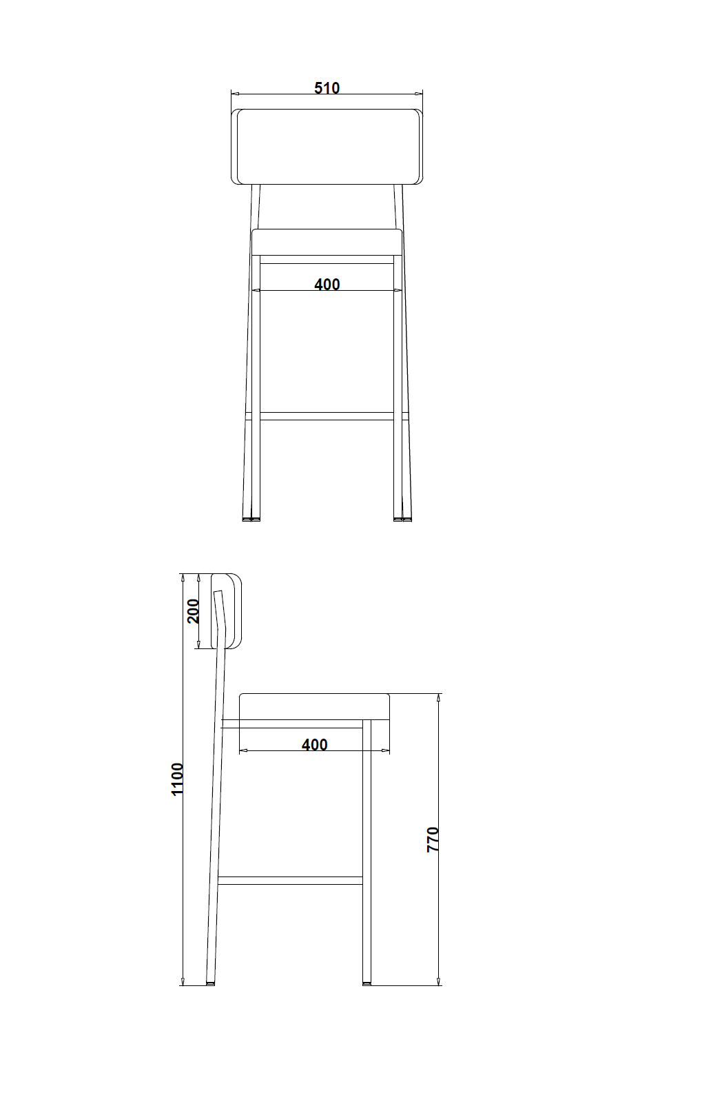 - Base fixa banqueta alta em tubo 7/8″ x 1,50mm com acabamento em pintura epoxi.