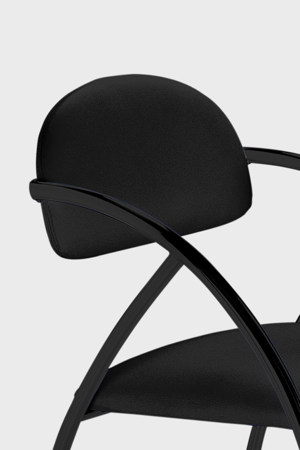 - Base fixa tipo pé/braço em aço tubular com pintura preta e sapatas deslizantes .